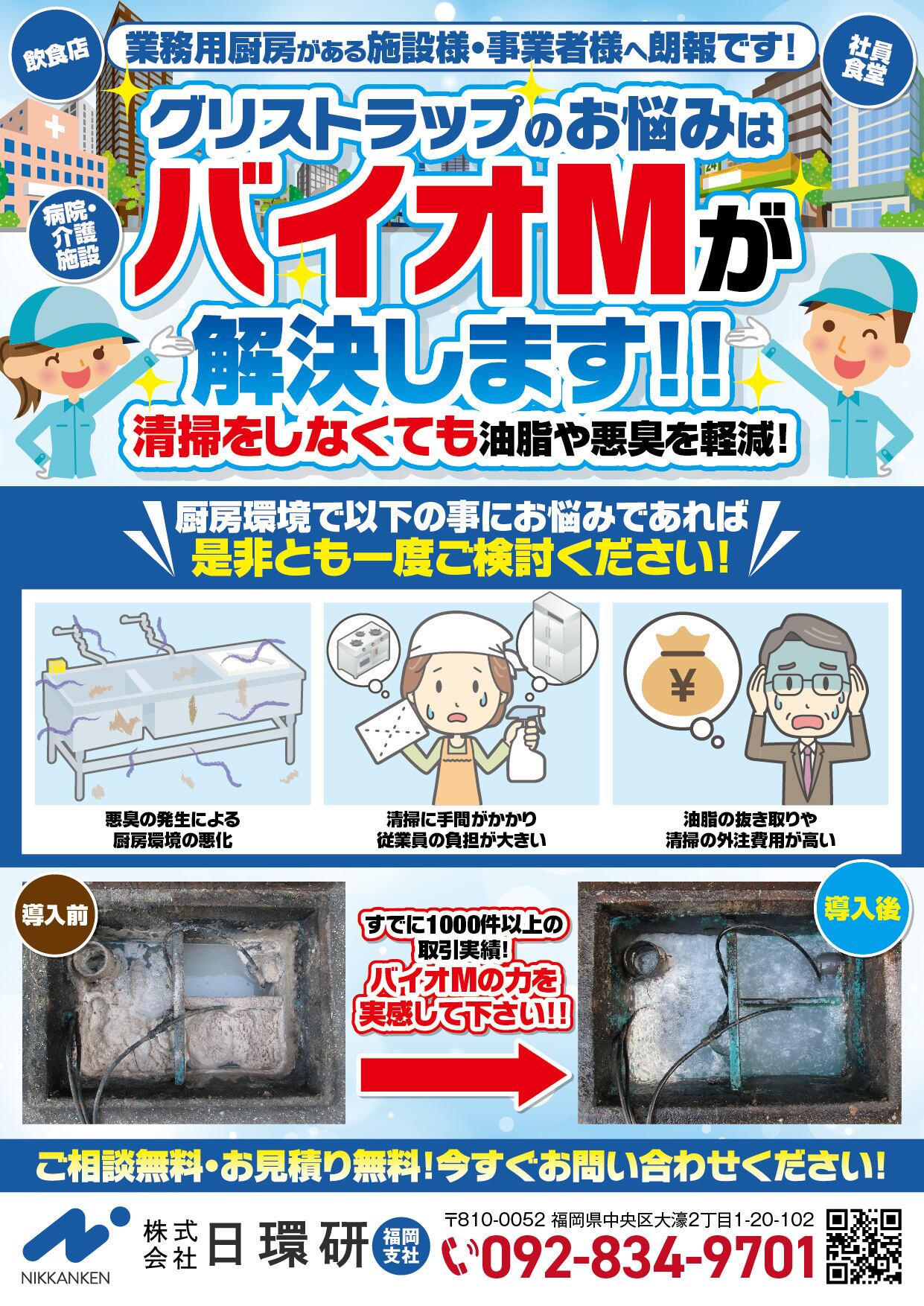 このような問題をバイオMが解決します。グリストラップに滞留する油脂類、汚泥等を微生物菌の働きにより分解処理し、悪臭の発生を防ぎ抜き取りや清掃の負担が軽減します。